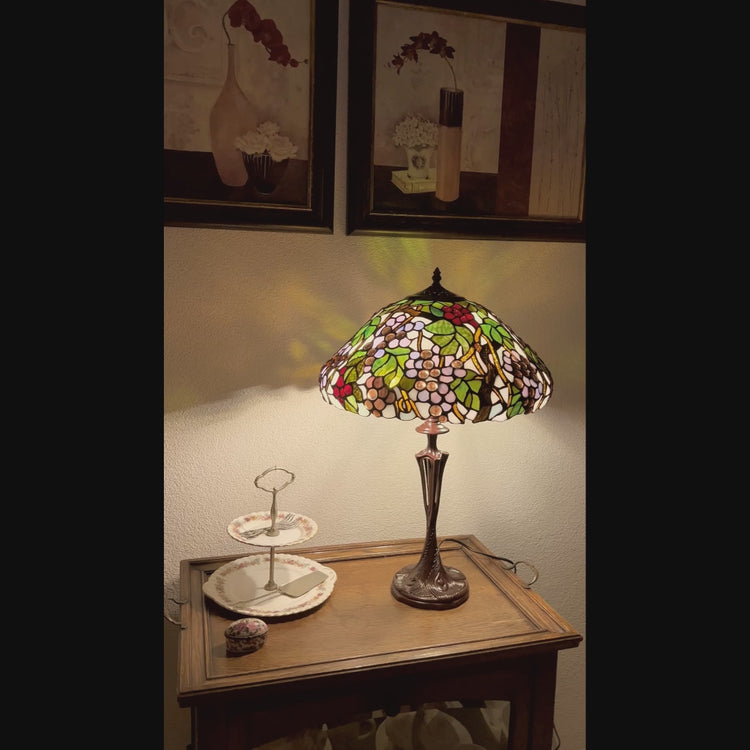 • Uniek ontwerp: kap vol kleurrijke druivenmotieven met een sierlijke voet met vloeiende, boomachtige lijnen.