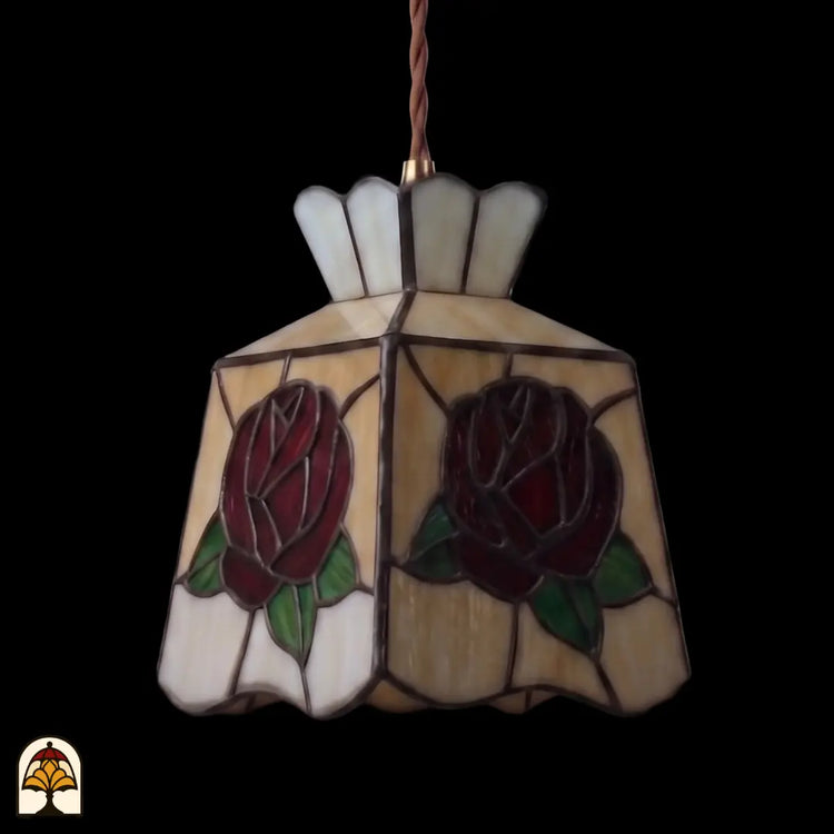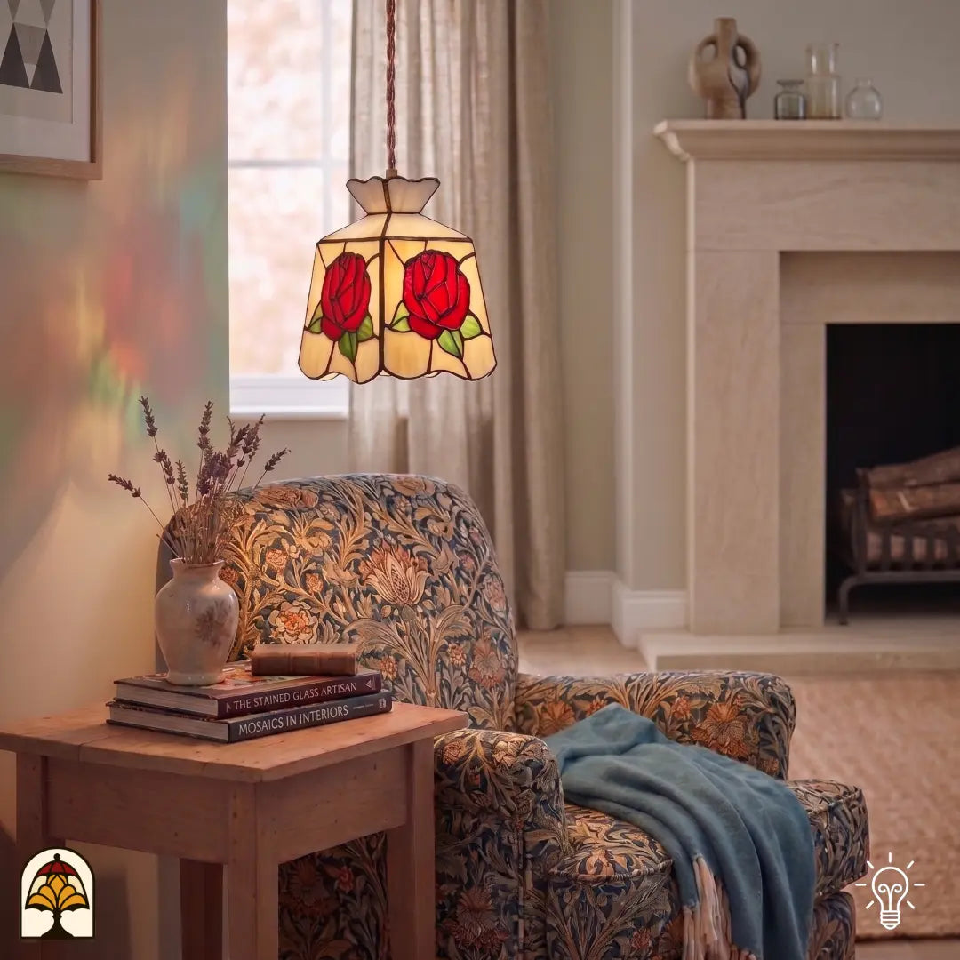 Haal een meesterwerk vol romantiek en klassieke warmte in huis met de Rosa Romantica. Deze charmante tiffany hanglamp brengt een nostalgische sfeer in elke ruimte dankzij het prachtige ontwerp van opvallende, dieprode rozen op een zachte, crèmekleurige achtergrond. Het sfeervolle geheel is stijlvol afgewerkt met een klassiek gedraaid stoffen snoer en messing accenten. Zodra u de lamp inschakelt, verspreidt het authentieke glas in lood een intieme, warme gloed door uw kamer. Dit zorgt direct voor een ambiance van klassieke geborgenheid. Of u hem nu boven een compacte eettafel hangt of een donkere hoek wilt oplichten, deze hanglamp fungeert niet alleen als verlichting, maar als een authentiek kunstobject dat een bijzonder verhaal vertelt.